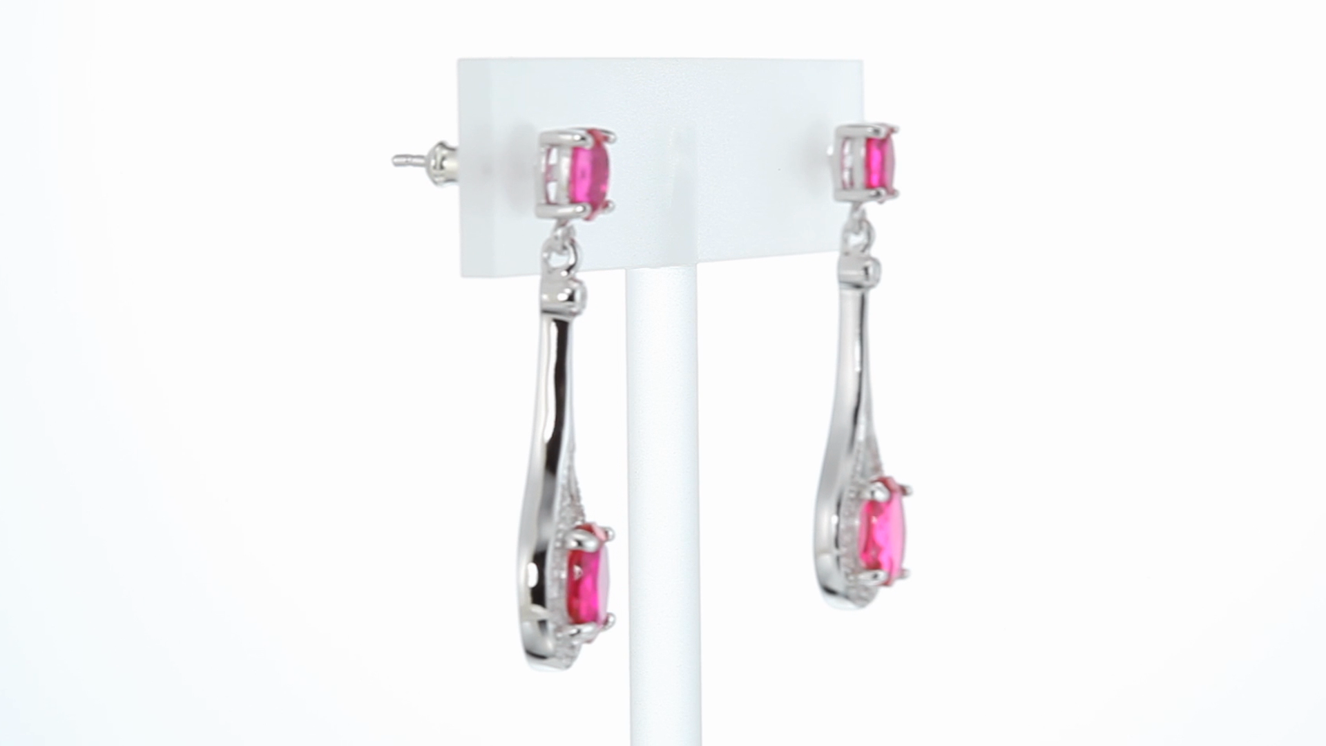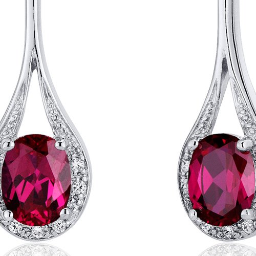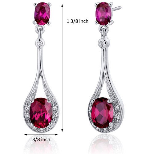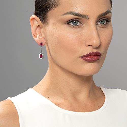 Specification: Peora Created Ruby Dangle Earrings 925 Sterling Silver, Halo Drop Oval Shape, 4.50 Carats total, Friction Backs
